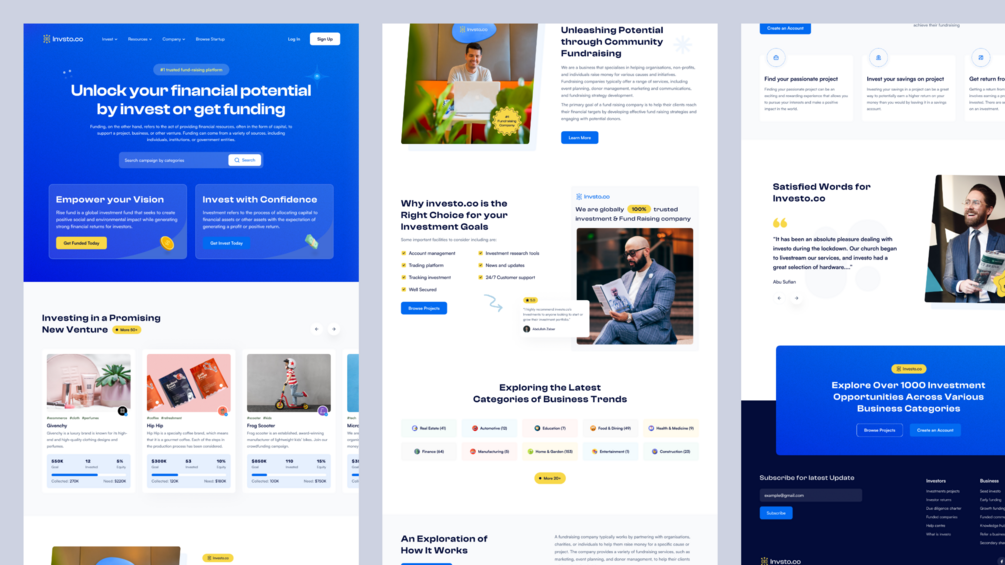 investo.co is a kit for the crowdfunding website. This website is created for startup, business, developer, and personal use. It is most suitable for all businesses or straps for investment or fundraising. It is very easy to modify as you want.