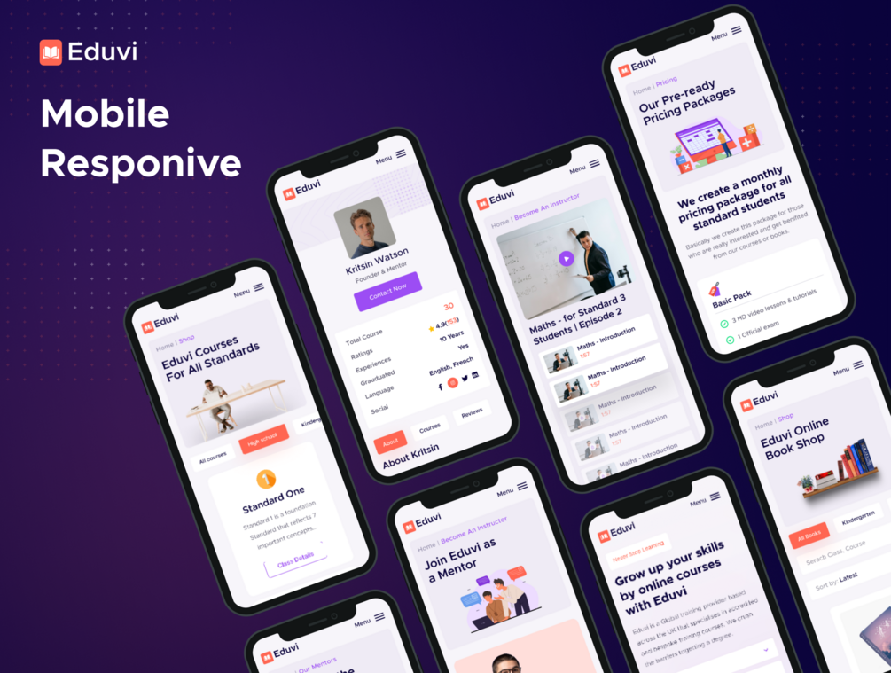 Eduvi is an online-based learning platform website UI kit. Made with Figma, Sketch. The kit includes 10 modern web pages.
